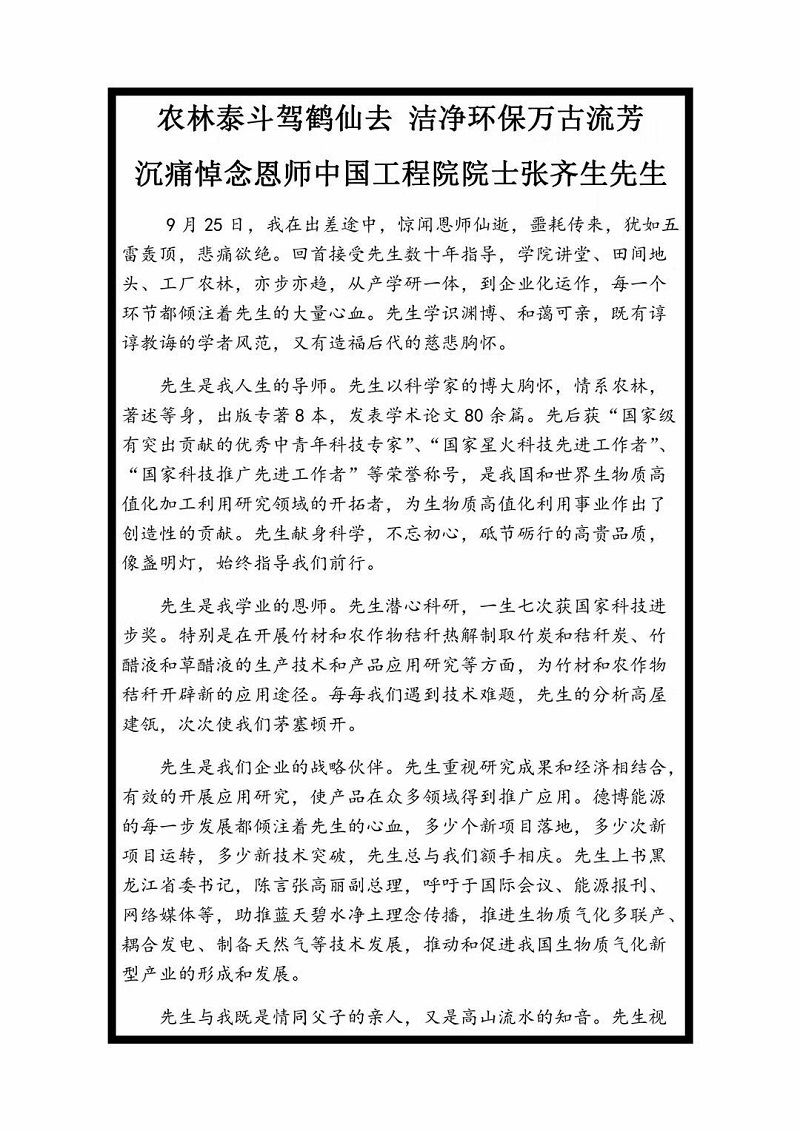 德博能源专门组织人员以张守军董事长带队,亲赴南京吊唁。并通过公司网站、微信公众号推广、发布悼词、敬献花篮等多种形式,深刻缅怀张齐生院士和德博的导师情、恩师义、战略缘、长期亲密合作的深情厚谊。祝愿张齐生院士一路走好!