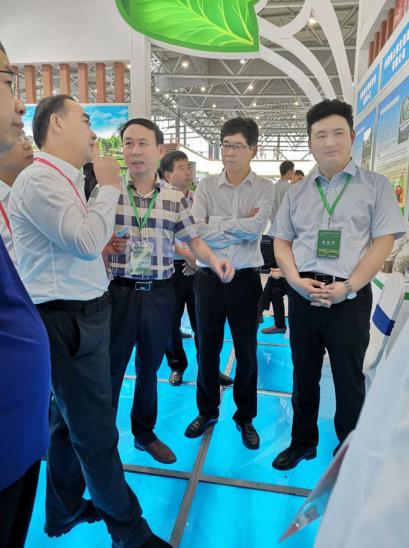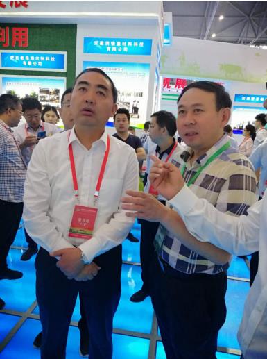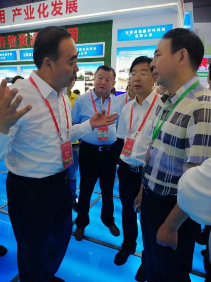 6月17日,阜阳市市长孙正东、安徽省农业农村厅渔业局局长孙刚莅临2019安徽秸秆综合利用产业博览会德博展位,调研德博秸秆炭气联产技术,德博董事长张守军陪同讲解。