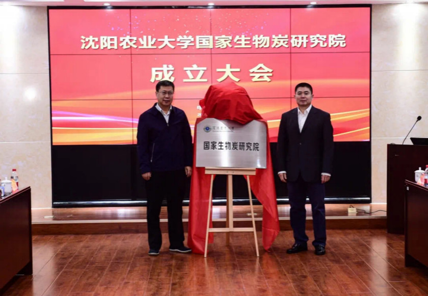 辽宁省教育厅副厅长李庆才、辽宁省科技厅副厅长王学来为沈阳农业大学国家生物炭研究院揭牌