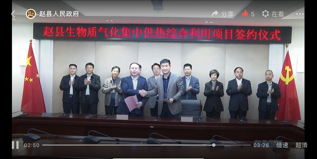 赵县委常委、常务副县长张宝华与德博公司董事长张守军签订项目合作协议。该项目总投资2.8亿元,以玉米秸秆等农林废弃物作为原料,根据原料品质差异,采用流化床与固定床炭气联产气化工艺,多种高附加值产品同时输出 ,力求经济效益最大化。项目小时产生物质燃气80000Nm³,年处理玉米秸秆等农林废弃物35万吨,年产生物质炭化料3.6万吨,蒸汽50万吨,替代天然气3750万Nm³用于炉窑燃料。生物质炭化料产业链延伸:年产炭基肥5万吨,年产果木烧烤炭1万吨,年产活性炭0.8万吨。