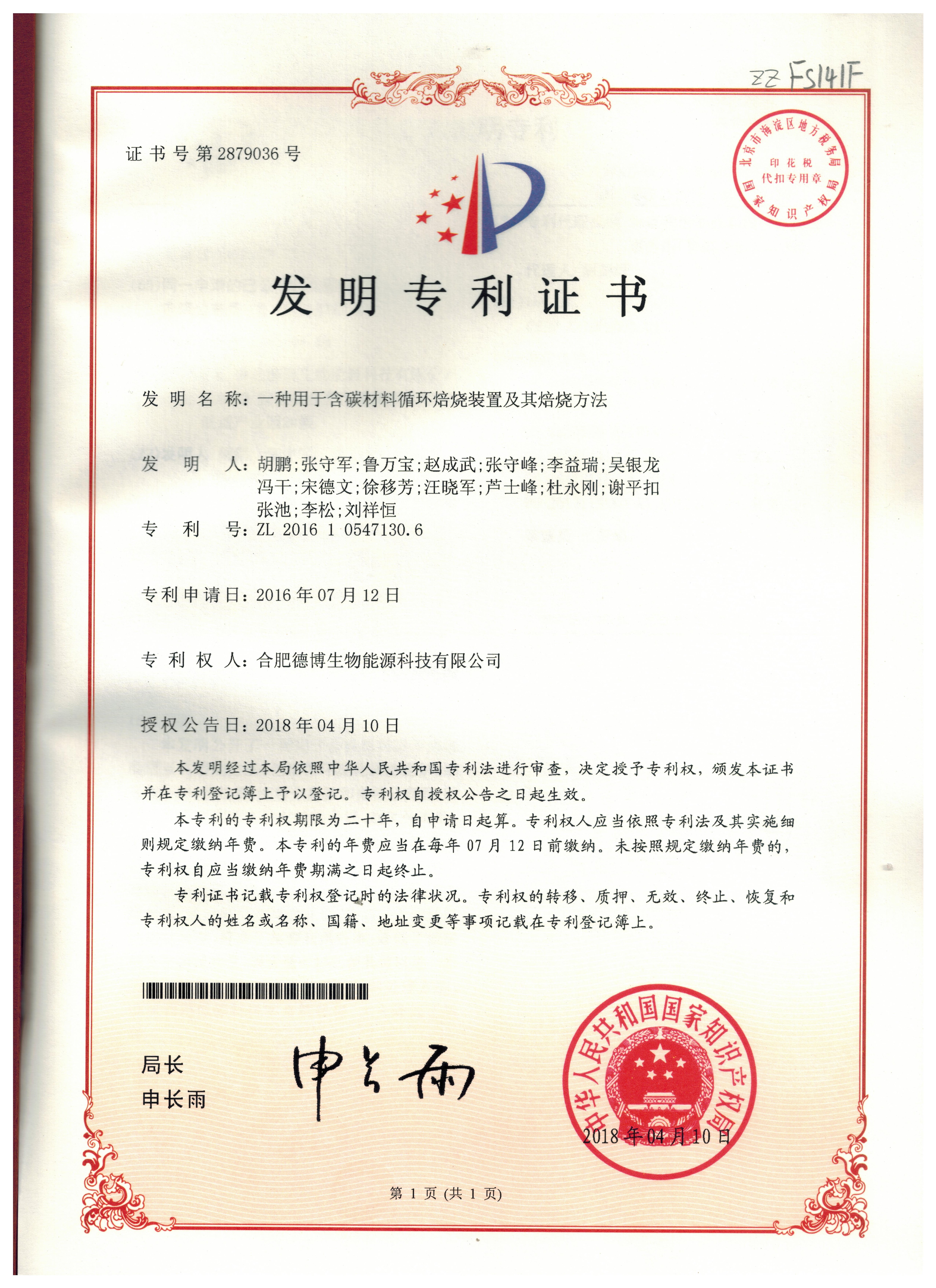 发明专利:20180410-一种用于含碳材料循环焙烧装置及其焙烧方法