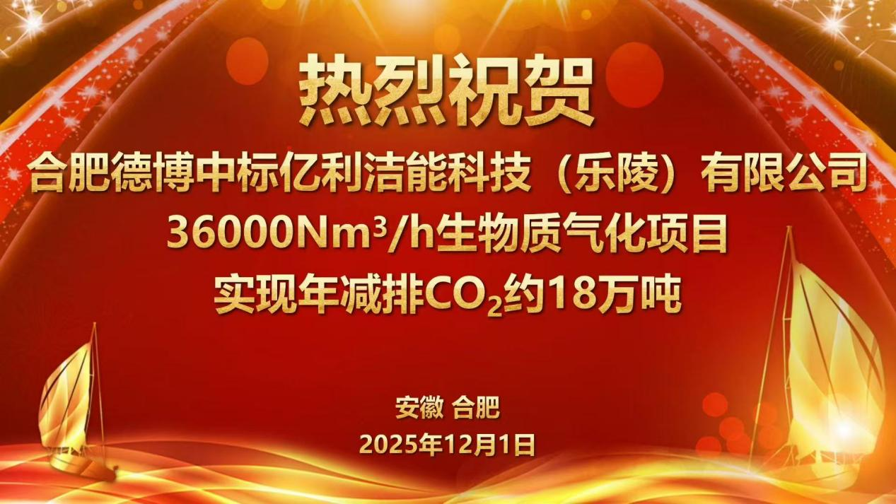 2025年12月,合肥德博生物能源科技有限公司成功中标亿利洁能股份有限公司山东乐陵生物质气化项目。该项目建成投产后,预计每年可减少二氧化碳排放约18万吨,为当地清洁能源替代与绿色发展注入强劲动力。