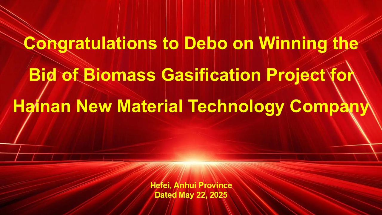 Congratulations to Debo on Winning the Bid of Biomass Gasification Project for Hainan New Material Technology Company